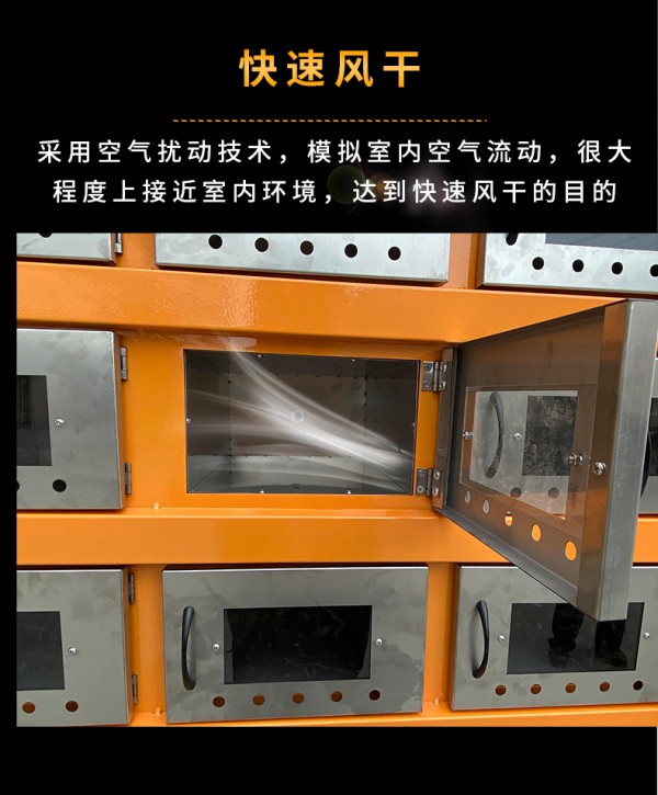3. 采用空气扰动技术,模拟室内空气流动,zui大程度上接近室内环境,达到快速风干的目的;