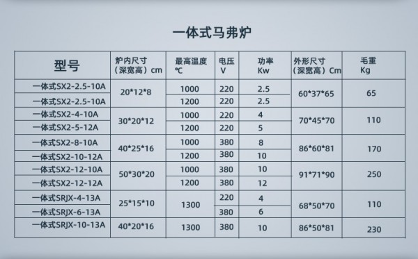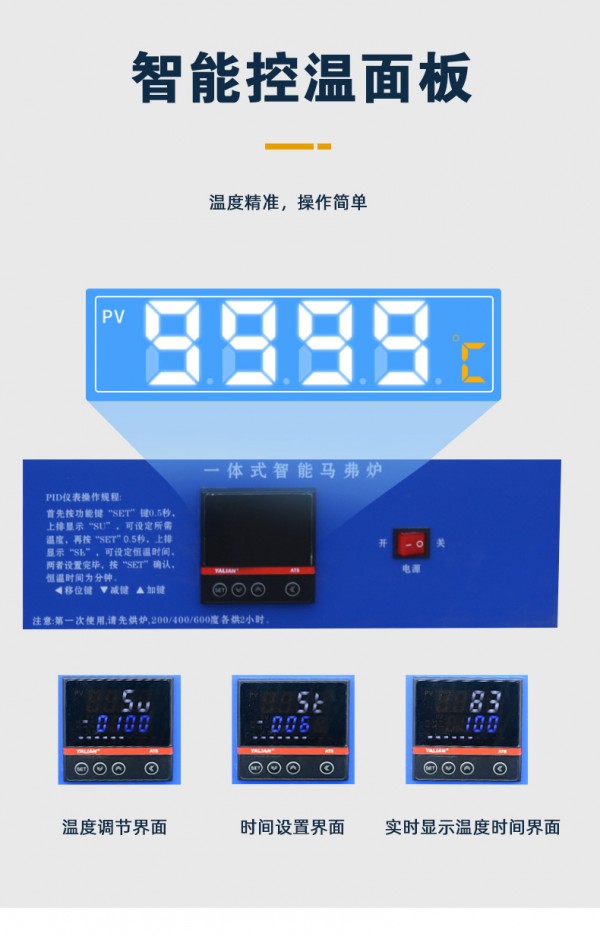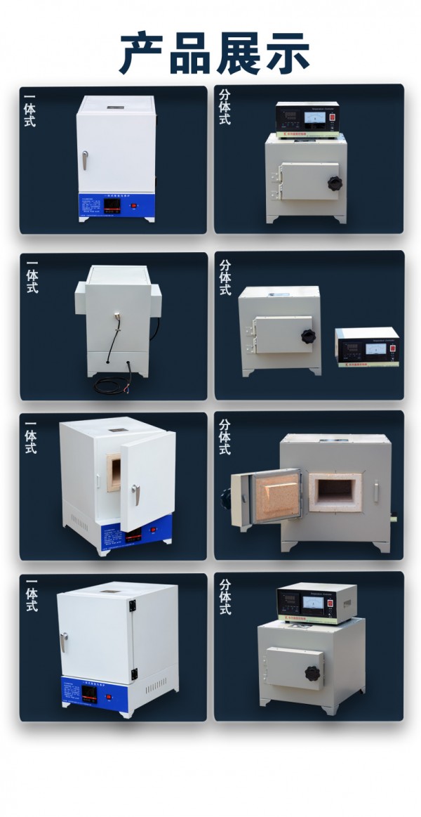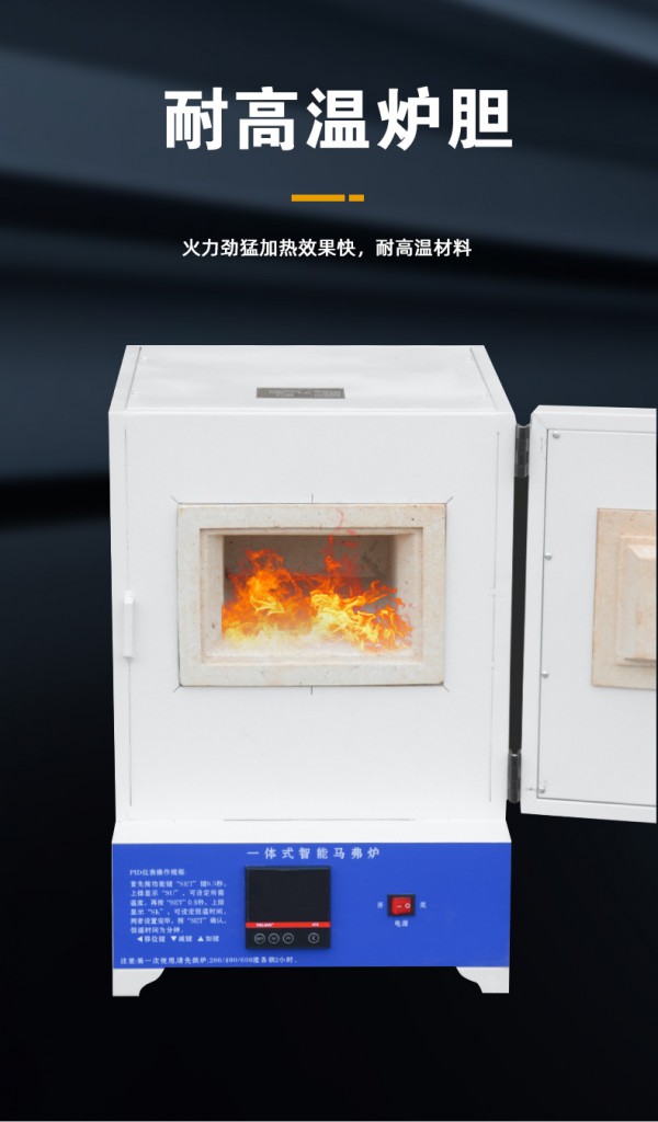 一体式马弗炉为周期作业电炉有高温、中温等多种规格,可供工矿企业、科研等单位实验室作化学分析、物理测定和一般小型钢件淬火、退火、回火等热处理及金属烧结、熔解、分析等加热用。