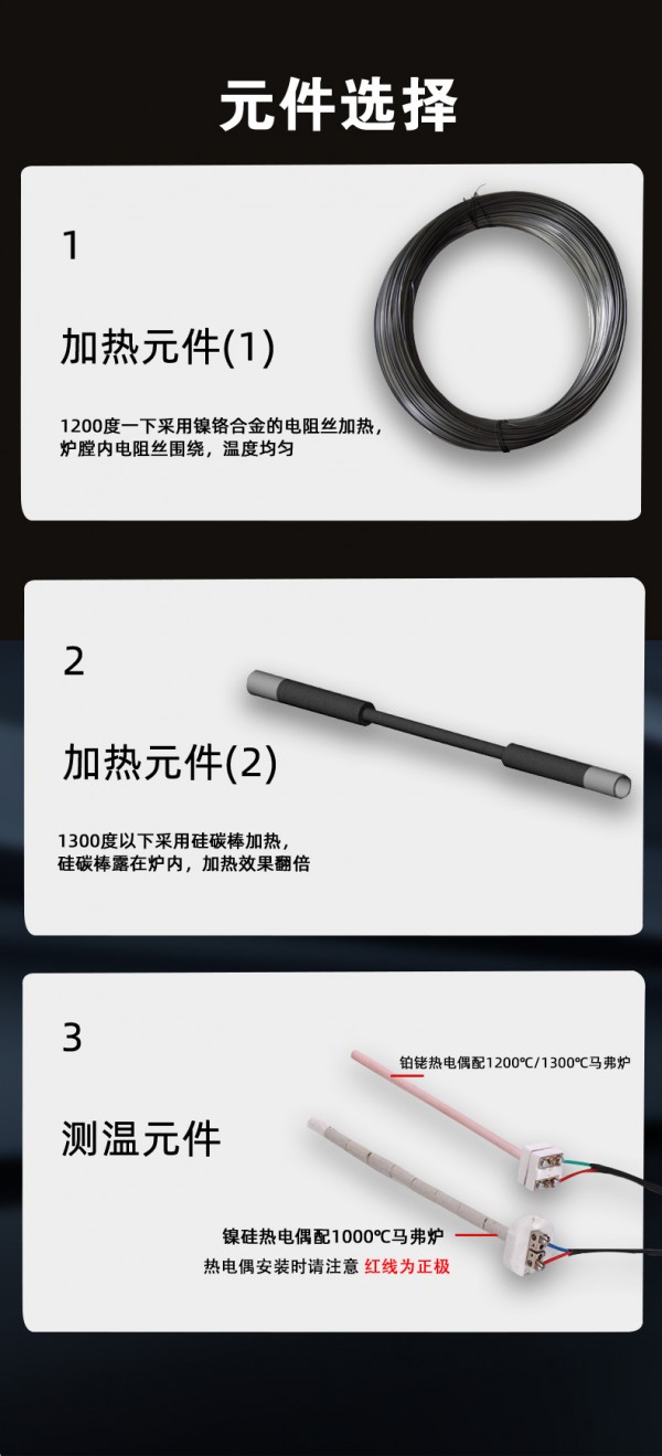 1200度以下采用镍铬合金的电阻丝加热,炉膛内电阻丝围绕,温度均匀