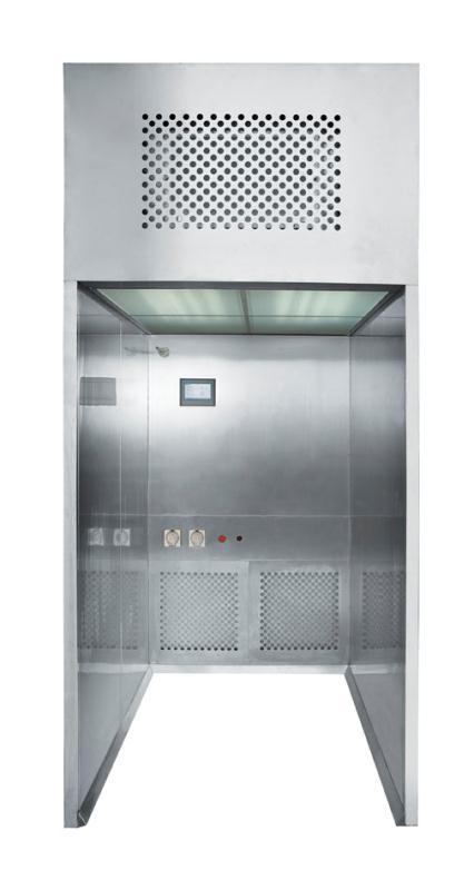 称量室回风先要通过初效过滤器进行预过滤,将气流中的大颗粒粉尘粒子处理掉 经过预处理后的空气,再经过中效过滤器进行二次过滤,以起到充分保护 过滤器的作用。在离心风机提供的压力下,通过 过滤器,使之达到洁净要求。洁净气流被送至送风箱体内。所有气流均经过过滤器处理,所以送风,排风均不带残余粉尘,避免了二次污染。由于在工作区域形成稳定的单向流,在此区域中散发的粉尘,会在单向气流的影响下,随着气流而被初、中效过滤器所捕集。形成相对与外部环境的负压,从一定程度上保证了此区域内的粉尘不会扩散至室外,起到保护外部环境的作用。