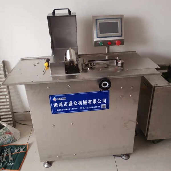 本肠类自动扎线机属气动单路半自动型,不锈钢制造,结构紧凑,使用方便,实用美观,可结扎羊肠衣、猪肠衣、蛋白肠衣、塑料肠衣等,是香肠、火腿肠、烤肠、亲亲肠生产定量、结扎的理想设备。 香肠扎线设备 香肠扎线机 亲亲肠扎线机 扎线机 本机定量依靠定位件和手工移动香肠位置,来确定每根香肠的长度然后启动扎线装置来完成。
