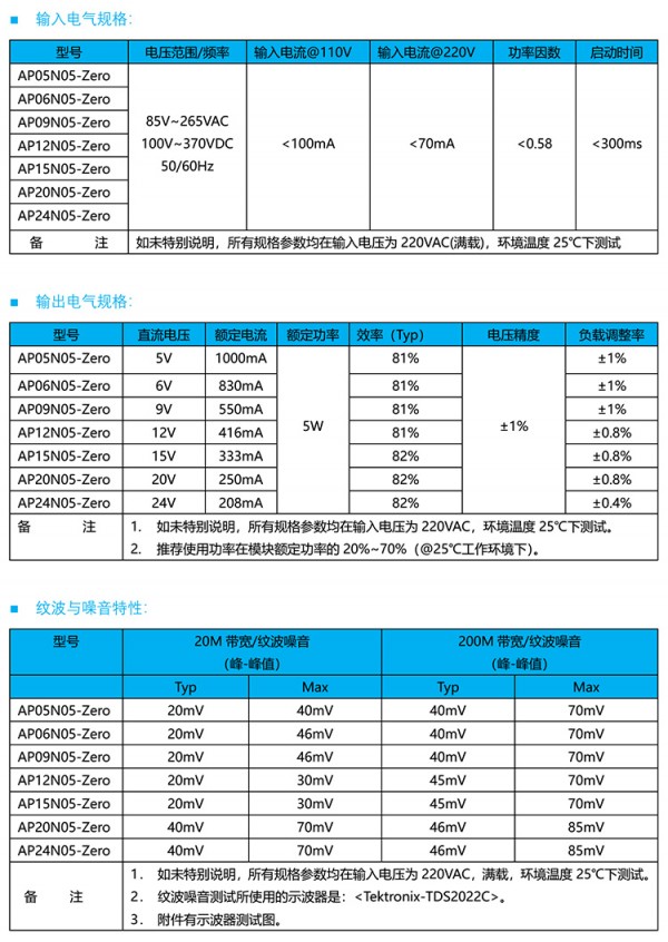 研发生产3-36W AC-DC电源模块。AC/DC电源模块AP05N05-Zero产品特性:交直流两用,宽电压输入,低纹波噪音,高可靠性,欢迎咨询!