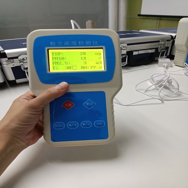 JYB-6A手持式粉尘检测仪将大型公共场所室内,工矿企业,工厂车间或生产车间内带有粉尘颗粒的空气吸入仪表内,通过高精度的激光粉尘检测传感器来进行分析,得出来的数据通过仪表的显示屏来显示出该空间内粉尘的浓度值。