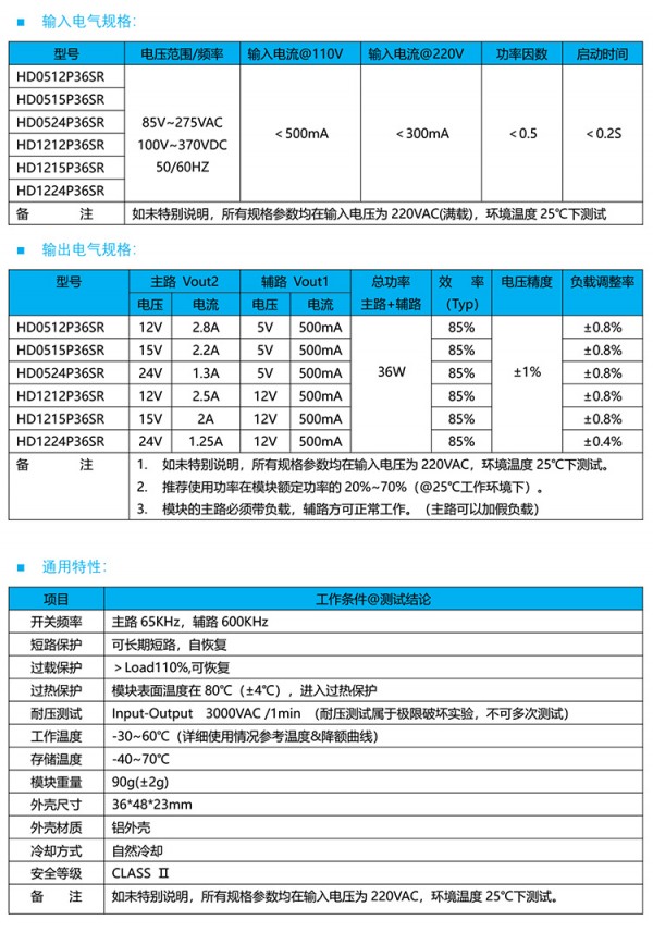 ACDC双路输出电源模块HD0524P36SR]信息由会员[