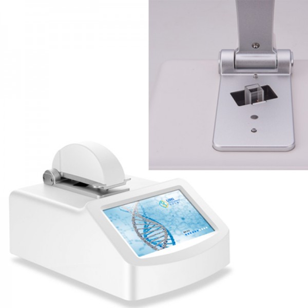 UNano-1000 超微量核酸分析仪采用 7 寸电容触摸屏和定制的操作系统,不需外接电脑,简单易用的数据至打印机选项,您可通过内甲打印机直接打印报告,使您高效方便的应用于生命科学方面的应用。