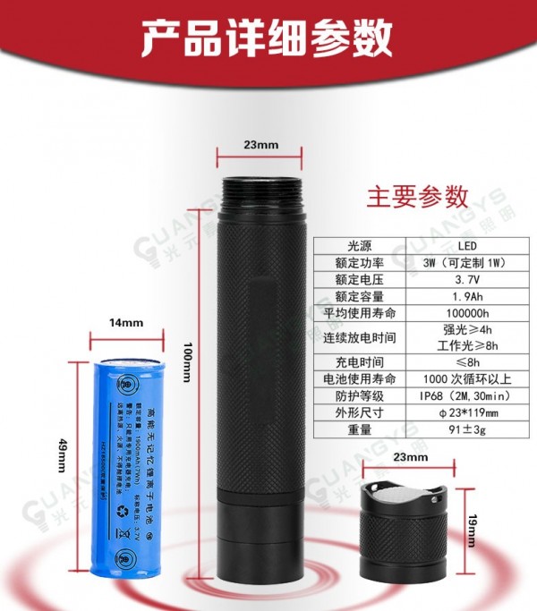 外形美观:体积小,重量轻,特别适合安装在头盔上,作为头灯使用;