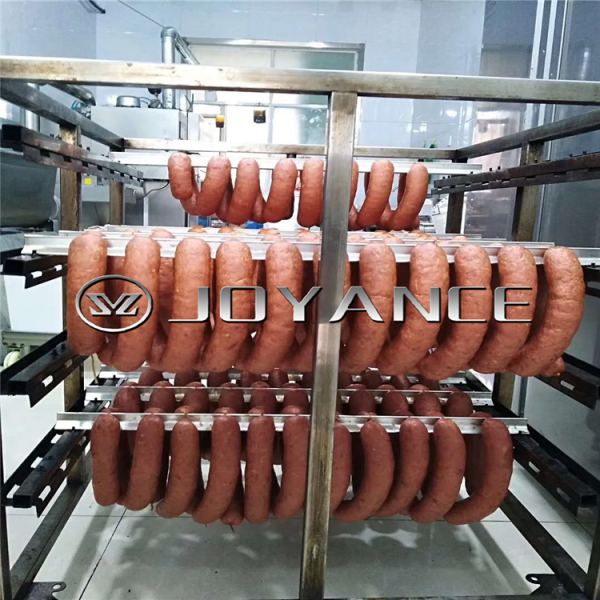 红肠蒸煮烟熏设备具有烘烤、干燥、蒸煮、冷熏、热熏、冷却等功能,用户可根据产品加工工艺的不同要求,灵活选择适当的工艺程序,实现自动控制,达到熟化和灭菌之目的。