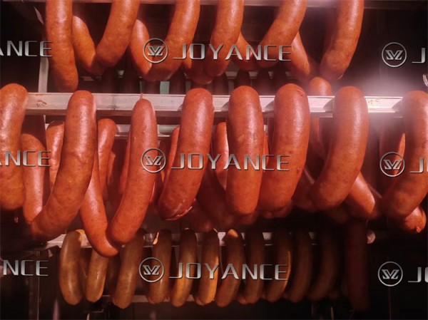 哈红肠熏烤炉,香肠烟熏炉进行烘干,第一次就行表皮烘干起具有哈红肠特色的核桃纹,在进行蒸煮,把红肠蒸熟,在进行第二次烘干,把红肠蒸煮的水分给烘干,最后一步进行烟熏上色,美味可口的红肠就做好了。