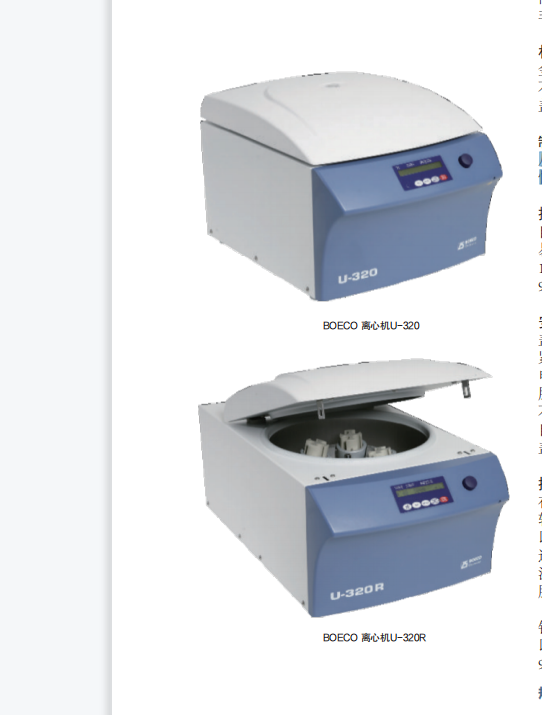 BOECO 离心机U-320 / U-320R由于其广泛的附件,U-320和U-320R离心机是常规离心机的完美通用型制药和生物技术行业的基础研究和R&D实验室。