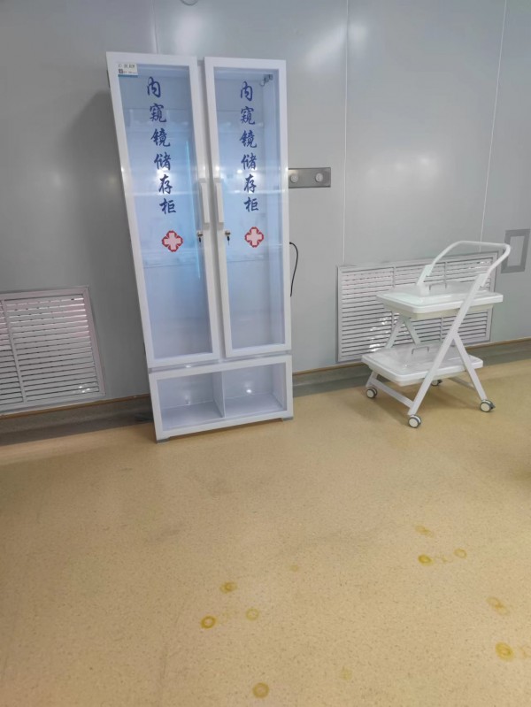 产品采用亚克力材料制成,软镜柜内设计有透明亚克力制成的内镜悬挂系统,该系统为上、中、下的定位内镜,防止相互碰撞。配有紫外线灭菌灯(单门柜20W,双门柜30W),可客户客户要求选配循环风干燥,微电脑控制系统。