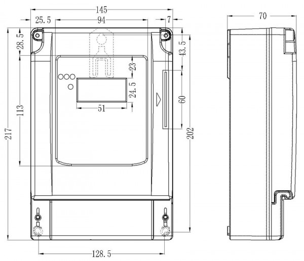 3、DTSY型三相四线预付费一卡通多功能电能表安装尺寸
