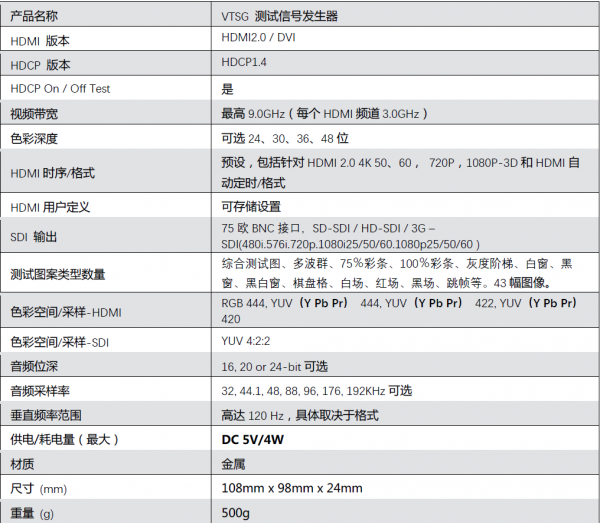 9、数字视频信号发生器VTSG生成 61 个预定义的分辨率,10 个用户定义的分辨率和 1 个自动感应 HDMI 模式。