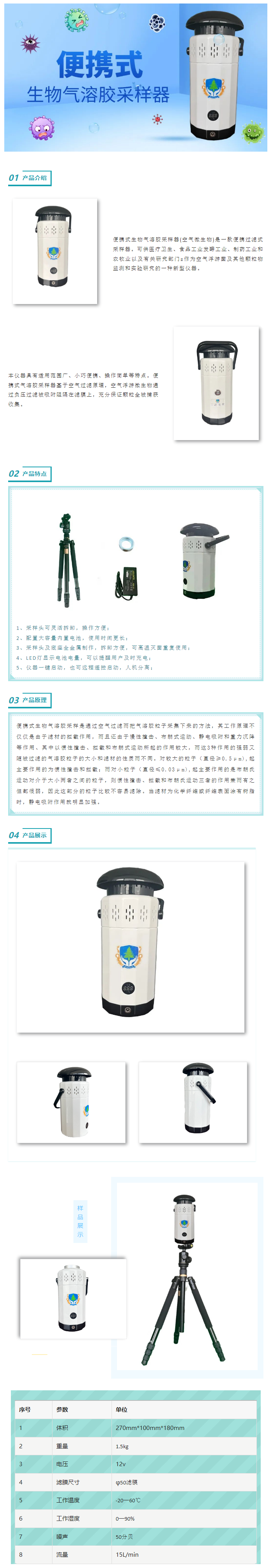 便携式生物气溶胶采样器(空气微生物)是一款便携过滤式采样器。可供医疗卫生、食品工业发酵工业、制药工业和农牧业以及有关研究部门作空气浮游菌及其他颗粒物监测和实验研究的一种新型仪器。本仪器具有适用范围广、小巧便携、操作简单等特点。便携式气溶胶采样器基于空气过滤原理,空气浮游微生物通过负压过滤被吸附阻隔在滤膜上,充分保证颗粒全被捕获收集。
