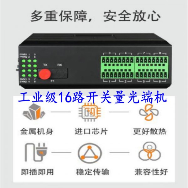工业级卡轨式16路开关量转光纤中继器技术参数