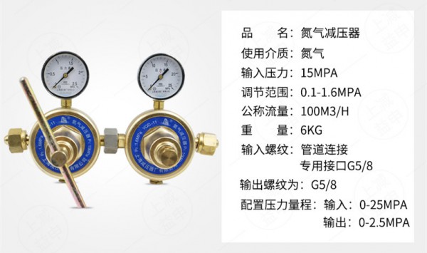 YQD-11氮气减压阀配置压力规格: 输入:0-25MPa