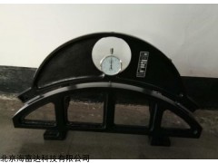 ⑶将测量仪放置在标准圆上,保证两测量块均与标准圆弧面接触良好,定位架与标准圆定位端面密贴,然后通过上下移动指示表,将指示表读数调整为标准圆直径值。