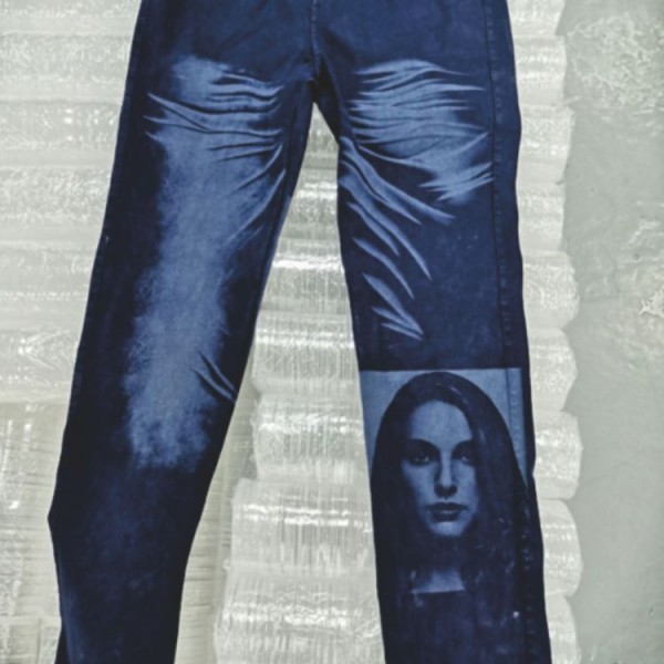 使用计算机设计图案、排版、制作文件,然后使用CO2激光雕花机使激光束按照计算机排版指令在服装面料表面进行高温蚀刻,高温蚀刻部分的纱线被烧蚀.燃料气化,形成不同深度和浅层的蚀刻,产生图案或其他洗涤效果。