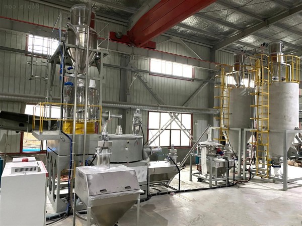 在粉料和颗粒料的自动配料系统中,使生产实现了标准化作业,集配料、混合、包装于一体,配料、混合、包装均为自动化,大大解放劳动力,提升效率,而且降低对环境、对人体的影响。“全自动配料系统彻底相比于人工配料大大降低可能出现的误差,配料精度可达2‰,废品率降低,节约原料,高精度的配比让品质更佳。该机主要适用于塑料橡胶、食品化工行业等,它一改传统的人工配料过程,以电脑控制来进行自动真空上料、自动称重配料,整体配料精度高。配料过程中受人为因素影响小,节省了劳动力,大大提高了生产效率和配方精度。这种自动配料系统结构紧凑,占地面积小,辅料容量大,故障率低,自动化程度高,配料精度高等几大优点。该产品自上市以来,产品远销各地,众多客户给予了很高的赞誉。