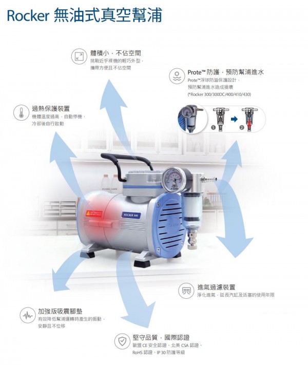 台湾洛科Rocker办事处:实验室无油真空泵、耐腐蚀真空泵、旋片式油泵、菌落计数仪、换膜过滤过滤器、生化废液瓶吸引真空泵、真空过滤装置等