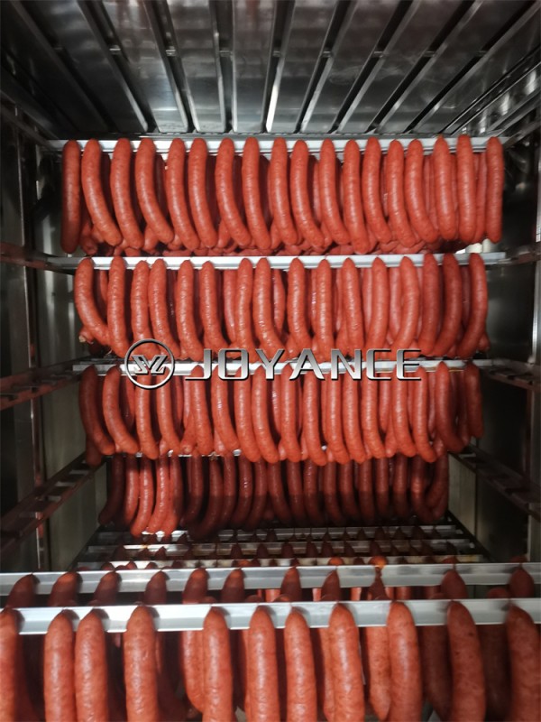 佳木斯哈红肠熏蒸一体炉,红肠烟熏炉具有蒸汽加热(蒸煮)、热风(干燥或烘烤)、烟熏、排气等功能。