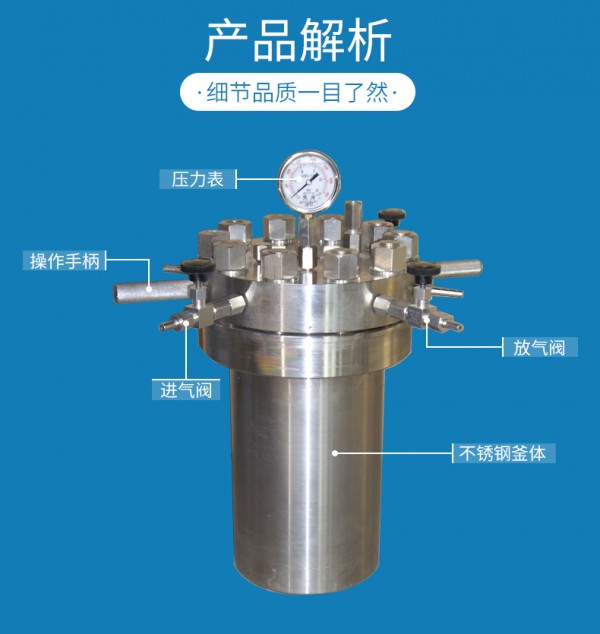 2.加料后螺丝对称压紧,当反应完成时釜体自然冷却到室温即可开启釜盖。