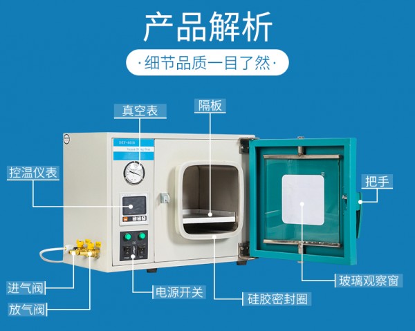 真空干燥器专为干燥热敏性、易分解和易氧化物质而设计,能够向内部充入惰性气体,特bie是对一些成分复杂的物品也能进行快速干燥。真空烘箱广泛应用于生物化学、化工制药、医疗卫生、农业科研、环境保护等研究应用领域,作为粉末干燥、烘培以及各类玻璃容器的消毒和灭菌之用。