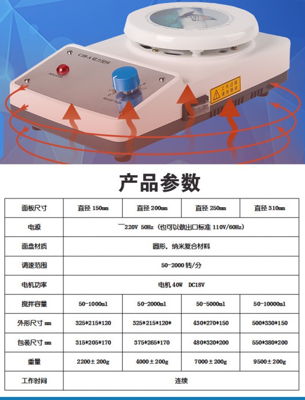 2.专li型新产品,采用圆形纳米复合材料上面,可单独做不加热搅拌,也可放置如电热套、水浴锅等做加热搅拌。