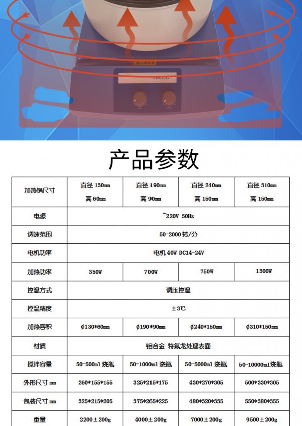 2.可对50-20000ml标准或非标准反应瓶进行加热搅拌。