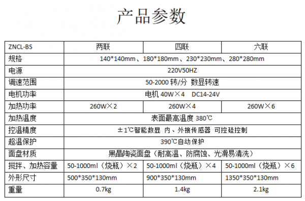 4.可对50-1000ml标准或非标准反应瓶进行加热搅拌。