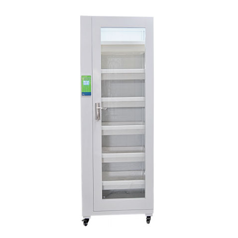 韵华硬镜储镜柜柜体材料采用多工艺处理的钢塑材料,规格长750宽500高1800mm, 柜内设有6层高分子复合材料一次成型托盘,用于存放硬镜及其他手术器械。