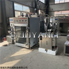 东北红肠烟熏炉,香肠熏蒸一体炉通过发烟管加热木粉或者白糖等烟熏材料来产生烟雾导入炉体内,实现烟熏。