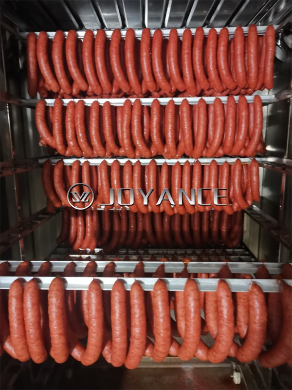 4、上色:结合烘干与烟熏2种功能,通过有的风道循环系统给不同产品上不同色泽。
