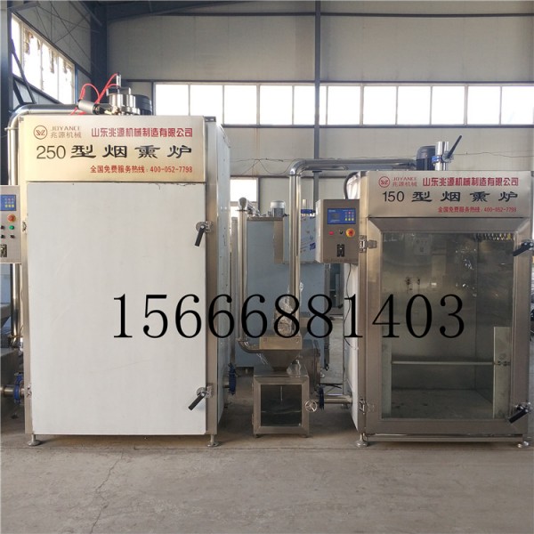 老火腿全自动烟熏炉,红肠蒸煮一体炉可蒸煮烟熏各种香肠、火腿肠、干肠、腊肠、烤肉及各种鱼等。操作简单、方便可靠。
