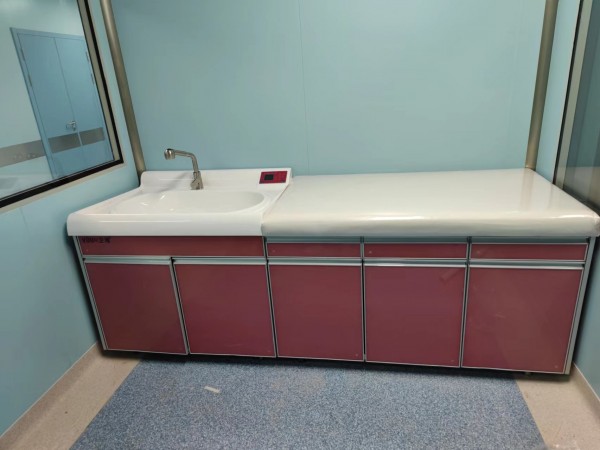 池内为适用婴儿洗澡设计了曲线模形,池上面可套防感染一次性塑料套,池边有防溢水导水沟及下水,有护理操作人员抗疲劳靠手设计,台面后端设有温控操作系统,池边设有洗澡用品放置专用区。