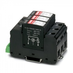 电涌保护器,用于2位绝缘接地1,000 V DC光伏系统,适合DIN导轨安装,3位底座元件带遥信触点,三个可插拔温度监控保护元件,每个插头上都有状态信息。
