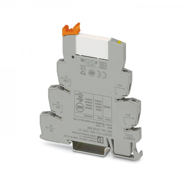 PLC-INTERFACE,由带螺钉连接器的基座端子模块PLC-BSC.../21-和带多层触点的插拔式微型继电器组成,可安装在NS 35/7.5导轨上,1PDT,输入电压12V DC