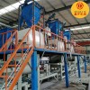 该机采用辊压式制板工艺,产品从保温层、铺布、上主料、复合、复压完成整板的生产过程,设备自动化程度高,操作方便,运行平稳,可根据客户要求生产不同规格、不同材质(板材保温隔热材料的保温主体可以是发泡型聚本乙烯板,挤出型聚本乙烯板,岩棉板,玻璃棉板,VIVA木丝水泥板,FOREX美岩水泥板等不同材料)的各种保温节能产品,产品表面光滑、平整、密实度高,改变了膨胀聚本板薄抹灰墙保温工程繁琐的施工工艺,提高了施工速度和经济效益