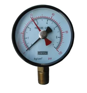 YZS-102双针压力表 1、用途说明: 双针压力表主要适用于机车车辆上测量液压系统或储汽缸内的压力,亦可同时测量对铜合金及锡铅合金纤料无腐蚀性、非结晶和非凝固介质的两个相同或不相同的压力。