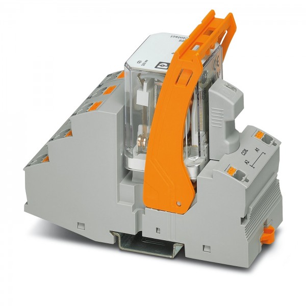 采用插拔式连接的预装继电器模块,包括:继电器底座、大功率触点继电器和支架。触点类型:3个PDT。输入电压:24 V DC