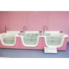 婴儿洗浴中心由婴儿洗礼池,婴儿游泳池,护理平台,抚触软包台,洗手池等组成。洗礼池和游泳池,洗手池,护理平台,转角平台都采用面层为优质的A级PMMA高分子复合材料一体成型,表面细菌残留量远远低于不锈钢,人造石,陶瓷盆和其他普通塑料。婴儿洗澡池底部圆滑突起设计;给婴儿一防滑支撑点,防止婴儿在池内滑动,造成意外呛水。