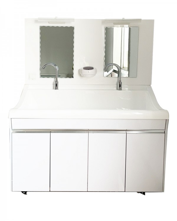 可按照客户的要求选配出水:感应、膝控、脚控;高背板设备配有自动感应皂液器、 颈式水龙头、灯光镜子、选配烘手器 、热水器。低背板洗手池 配颈式水龙头、选配烘手器 、热水器。
