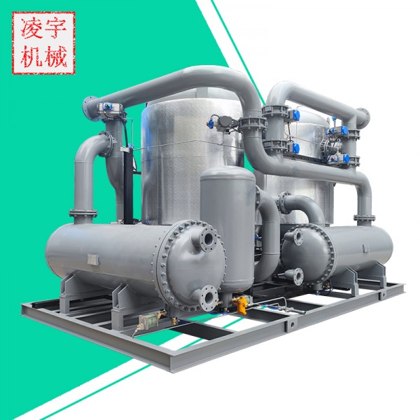 压缩热再生吸附式干燥机采用特殊设计流程,持续供气。采用高性能的吸附剂,其性能为业界所公认。露点稳定,压力露点低,无波动。气流分布结构:干燥塔底部设置有气流分布结构。压缩空气进入吸附塔后,先减速扩散,确保压缩空气在吸附塔内均匀平稳的流经吸附床层。这样保证了压缩空气与吸附剂的接触时间达到规定的露点温度,同时也降低了气流对吸附剂的冲击,减小了磨耗并提高了吸附剂的使用寿命。吸附剂使用寿命长,选用吸附干燥剂,粒度3-5mm,耐水性能好,浸入水中不裂不胀,防止干燥剂下沉和出现床层松动的现象。