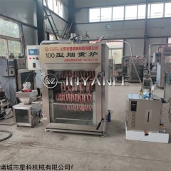 哈尔滨红肠熏蒸一体机,红肠熏烤炉具有蒸汽加热(蒸煮)、热风(干燥或烘烤)、烟熏、排气等功能。
