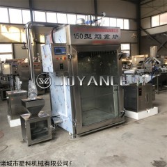 中小型哈红肠熏烤一体炉,红肠烟熏炉具有蒸煮,烘干,烟熏,上色,四为一体主要适用于香肠、红肠、腊肠、培根、鱼片、鸡腿、鸡翅、鸭脖子、牛肉干、腊肉、腊肠豆干等食品的加工,使用简单方便,一键式操作。