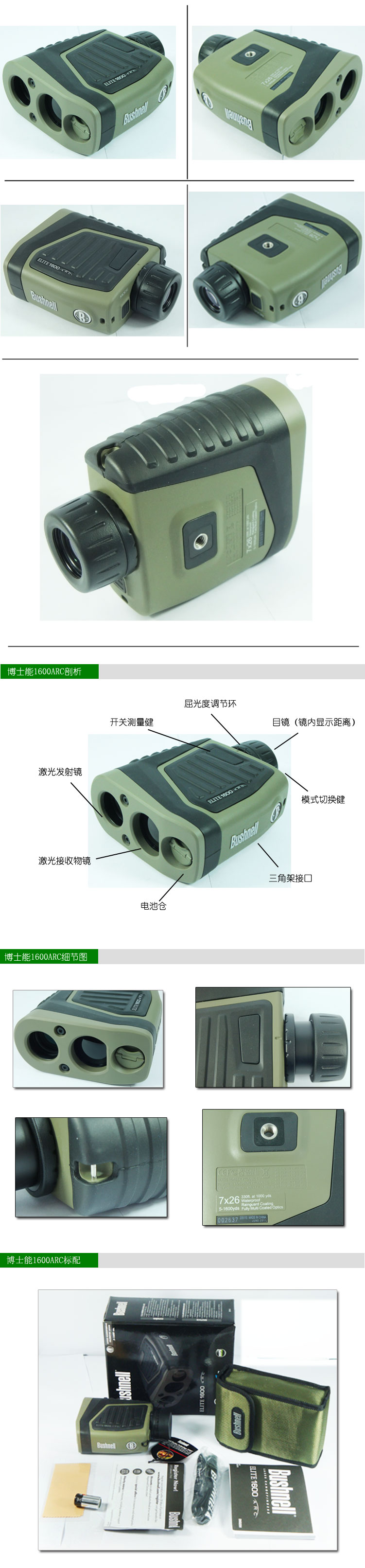 | 美国博士能BUSHNELL ELITE 精英1600ARC 望远镜式测距仪 1600码 测距测角测水平距离防水 2011年新款 VDT超快测距 连续测距 205110 |