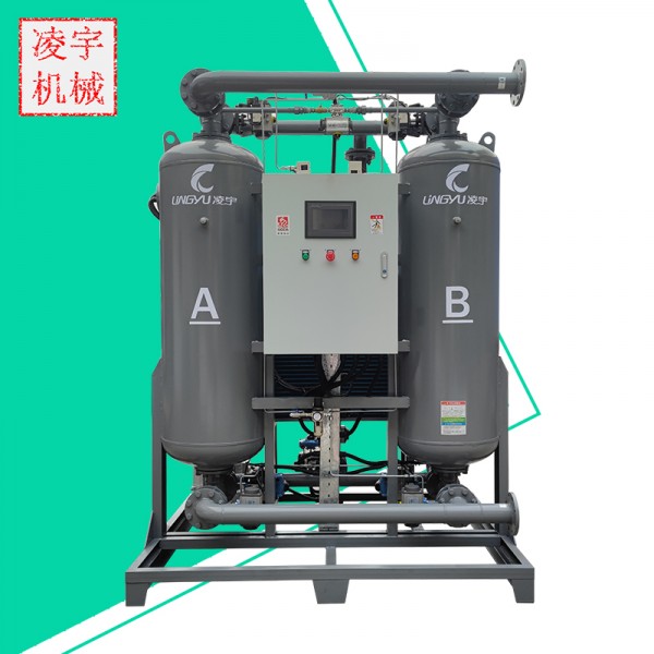 中山凌宇机械所自主研发生产的吸附式干燥机采用了高级的化工科技,其原理是将饱和之压缩空气,利用水份子和空气分子体积之不同,采用了气体净化专用之吸附剂(分子筛)来吸附压缩空气中的水蒸气。良好的吸附剂具有多孔性和大的比表面积,在高的水汽分压(加压下)气流中,吸附剂表面具有富集(吸附)水汽的性能,反之在低的水汽分压(减压下)气流中,已富集在吸附剂表面的水汽又会重新返回到气流中去。