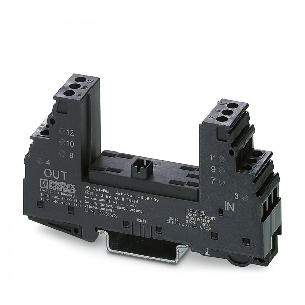 基座用于安装带保护电路的保护插头PT,用于单侧接地信号电路导线的保护。 安装在NS 35/7.5导轨和NS 35/15导轨上,外壳厚度: 17.5 mm。