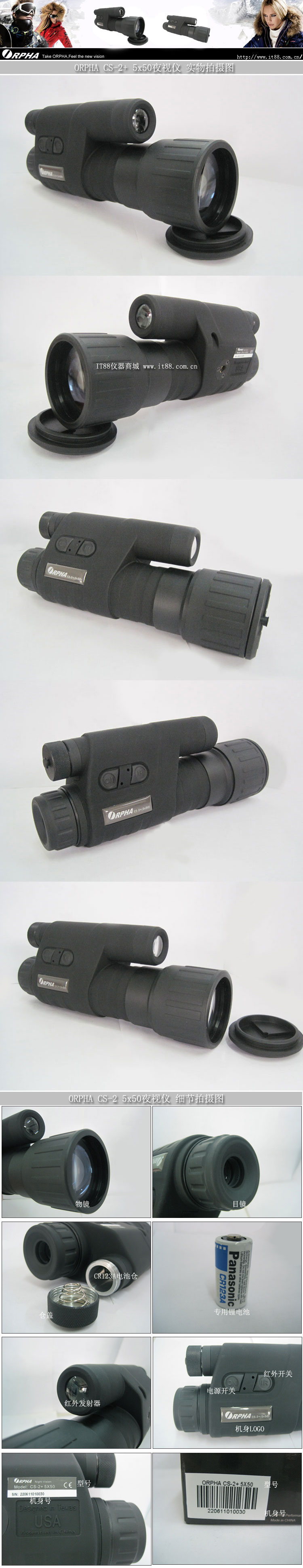 奥尔法ORPHA CS-2+ 于2010年12月新上市,采用ORPHA新一代+增像管,比老款CS-2具有更清晰的视野,更远的观测距离。
