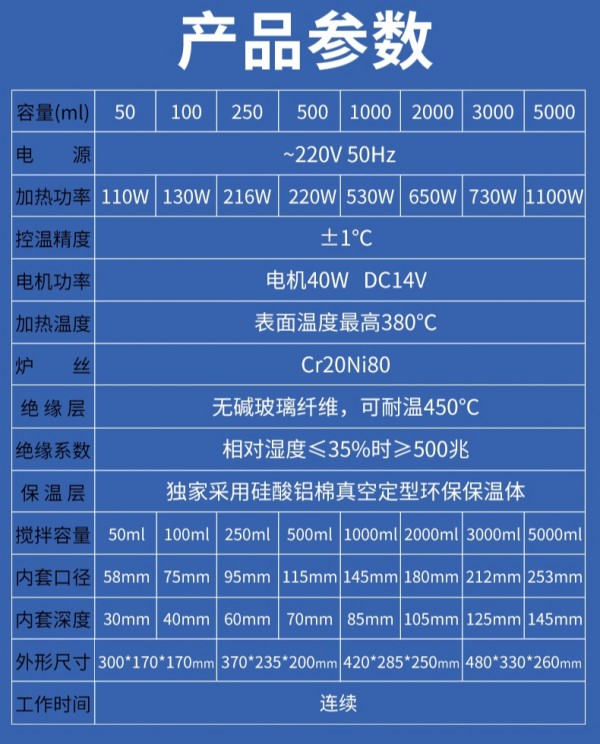 1.采用电热套加热,具有受热面积大、均匀、升温快的特点,表面最gao温度380℃。