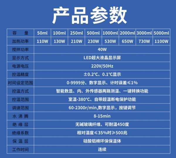 1. 采用电热套加热,具有受热面积大、均匀、升温快的特点,表面最高温度380℃。